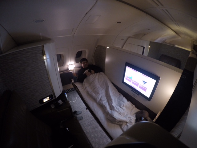 Já no avião parece que você está adentrando uma outra dimensão, pois é muita luxúria. Eu, apesar de estar acostumado a viajar, confesso que fiquei chocado. Da mesma forma que na sala Vip você também é recepcionado por um mordomo que te leva até o seu assento. Mais tarde vem a comissária e te explica como funciona seu assento, e acreditem em mim, é preciso essa demonstração pelas diversas funcionalidades. Vejam as fotos abaixo: