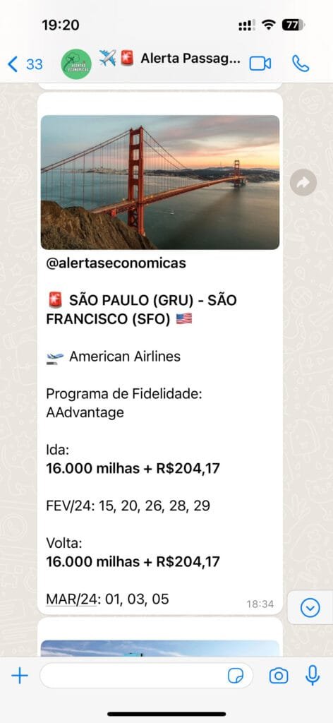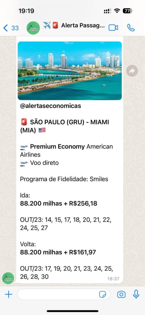 Você terá acesso a um grupo de whatsapp fechado a assinantes e receberá diariamente nossos alertas com oportunidades incríveis de resgates internacionais em classe econômica com milhas.