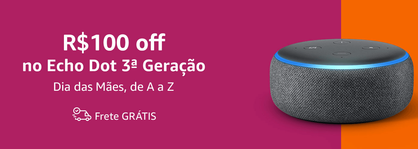A Amazon Brasil está fazendo uma mega liquidação do dia das mães, oferecendo um dos seus equipamentos mais populares, o Echo DOT de terceira geração com desconto de 100 reais, por valor final menos de 230 reais, o menor já visto.