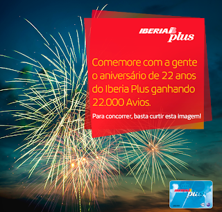 No aniversário da Iberia quem ganha presente pode ser você. A promoção dará 22.000 avios quando a Iberia atingir 1.000 likes, para isso você precisa ter o Facebook, e curtir a foto na página deles que pode ser acessada através do link abaixo. As regras do concurso também podem ser acessadas pelo site oficial da promoção. Boa Sorte e Boa Viagem!