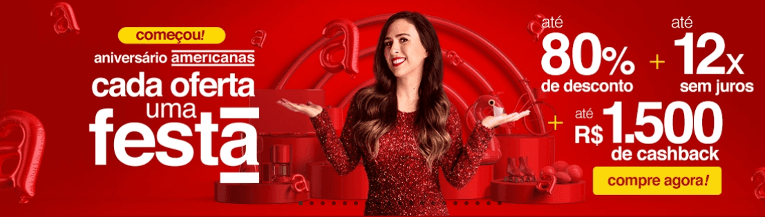 [dropcap]H[/dropcap]oje está ocorrendo a promoção de aniversário das Lojas Americanas com até 80% de desconto em alguns produtos e mais até 5 mil reais de cashback. Para ir direto no site oficial promocional clique aqui.