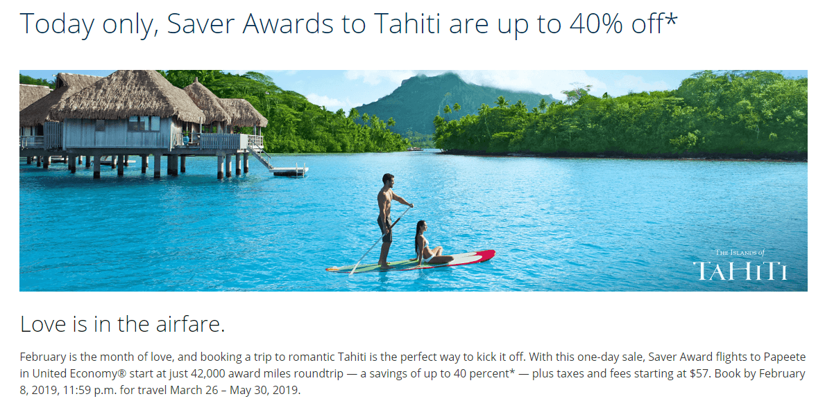 [dropcap]A[/dropcap] United está fazendo uma excelente promoção relâmpago hoje. Somente hoje você poderá reservar uma passagem de ida e volta em classe econômica para Papeete por apenas 56 mil milhas United ou menos.