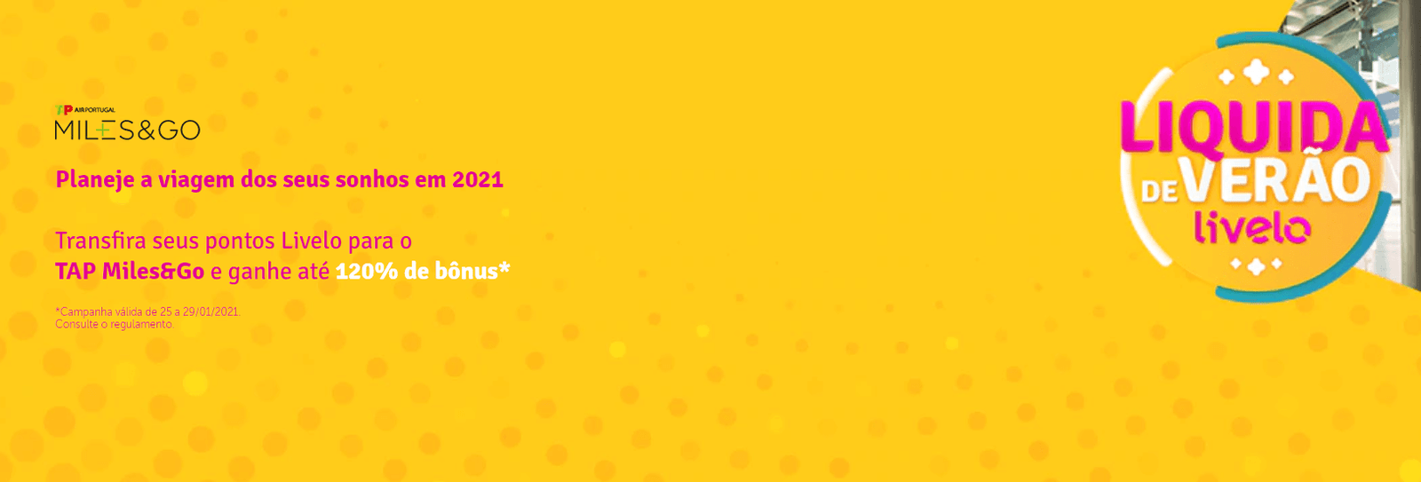Até 120% de bônus para TAP Miles&Go enviando da Livelo
