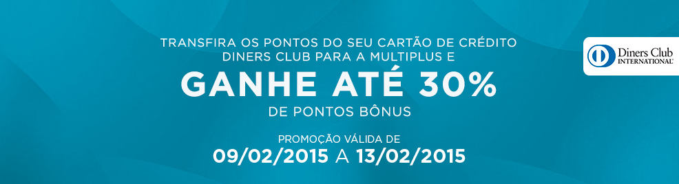 Essa foi uma que passou despercebida por nós até o aviso do leitor Flávio Crivellari, o qual agradecemos pela informação. Até amanhã, dia 13 de Fevereiro de 2015, o Programa Multiplus está oferecendo até 30% de bonificação para transferências realizadas do cartão Diners Club International. Serão 20% de bônus até 30 mil pontos, e 30% para transferências acima de 30 mil pontos. Para poder participar dessa promoção é necessário o registro no site oficial do Multiplus, o qual você pode ter acesso pelo link disponibilizado abaixo. Caso seja do seu interesse leia as regras da promoção no rodapé da página oficial, e faça uma Boa Viagem!