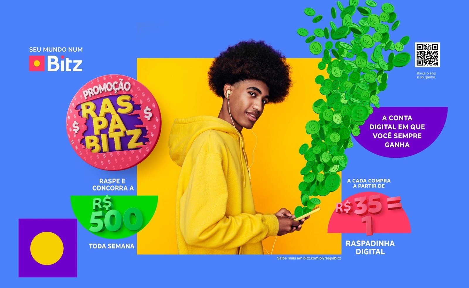 E para quem ainda não é um Bitzer – cliente Bitz – e quiser concorrer às raspadinhas, é só baixar o app, concluir o cadastro para ganhar um bônus de R$ 10 de boas-vindas e também uma raspadinha virtual para começar a participar da promoção.