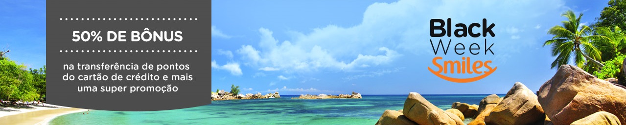Smiles anuncia Black Week com duas promoções, sendo a primeira mais interessante, onde será possível receber 50% a mais de milhas nas transferências de pontos de quaisquer cartões de crédito. Já a segunda, você recebe 20% de milhas de volta quando utiliza suas milhas smiles para alugar um carro. Essa promoção tem vigência até 26 de Novembro de 2015. Para participar de ambas as promoções é necessário o cadastro prévio via site oficial da promoção disponibilizado pelo link abaixo, assim como maiores informações sobre as regras e termos da promoção. Boa Viagem!