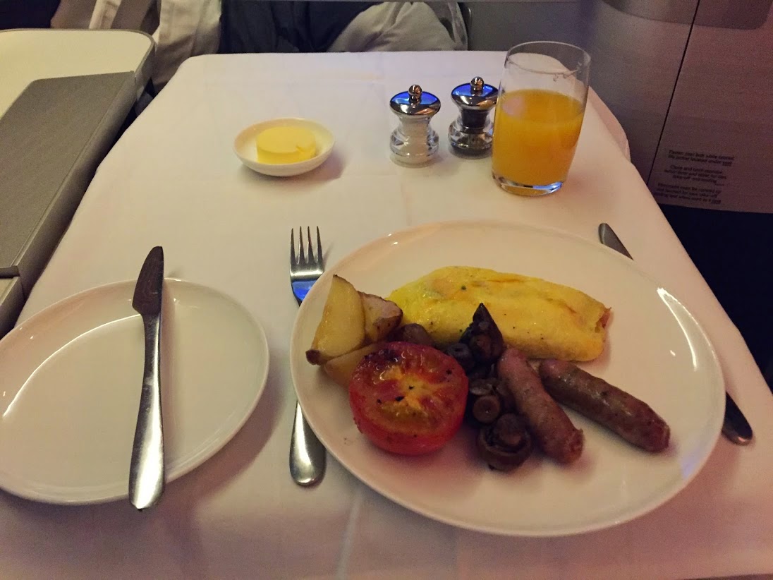 Abaixo já no A380 da British Airways, na Classe Executiva dessa vez, você pode ver que o assento também é muito confortável, e duas fotos do serviço de bordo do voo para Singapore.