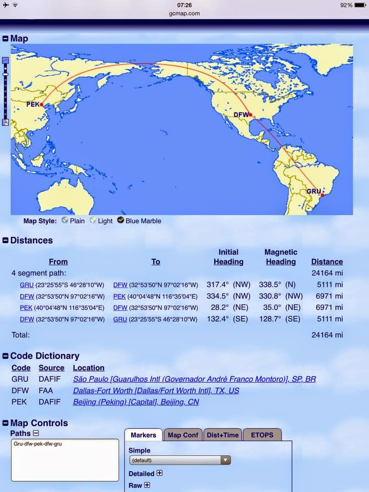 *Imagens retiradas do Great Circle mapper, e American Airlines.