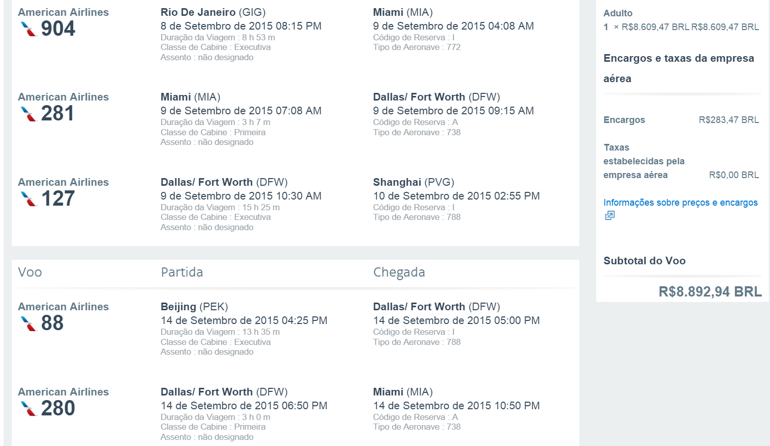 GRU/DFW/PEK/DFW/GRU = USD 3,435