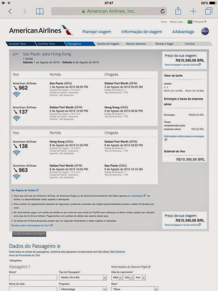 GRU/DFW/HKG/DFW/GRU = USD 3,465