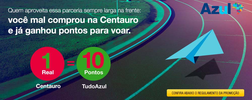 A promoção do Ponto Frio terminou, mas a Centauro acaba de iniciar uma super promoção concedendo 10 pontos por real gasto para o programa Tudo Azul. A promoção terá vigor durante todo o mês de setembro, e só valerá pelo hotsite da Centauro com o Tudo Azul, o qual você pode ter acesso clicando no link abaixo. Essa é uma excelente promoção, já que um gasto de 5 mil reais pode te render uma viagem de ida e volta com a Azul em classe econômica para os Estados Unidos, pois é possível achar ida e volta em resgates promocionais por 50 mil pontos no Tudo Azul. Se você já tinha planos de comprar algo na centauro, então melhor ainda, essa é a hora. Recomendamos ler o regulamento, que está disponibilizado na página oficial que pode ser acessada pelo link abaixo. Boas Compras e aproveite.