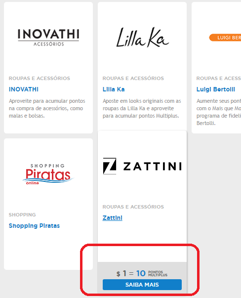 Já a Zattini está com algo paradoxal, pois no anúncio quando você vai escolher o parceiro aparece que está 10 pontos por real gasto, porém quando você acessa o link oficial aparece apenas 3 pontos a cada real. Nesse caso, é o típico caso de dar print na tela e fazer a reclamação, pois indica 10 pontos por real, porém quando você acessa muda, e aí deixo por conta de vocês. Abaixo segue o link oficial de ambas as promoções. Boas Compras.