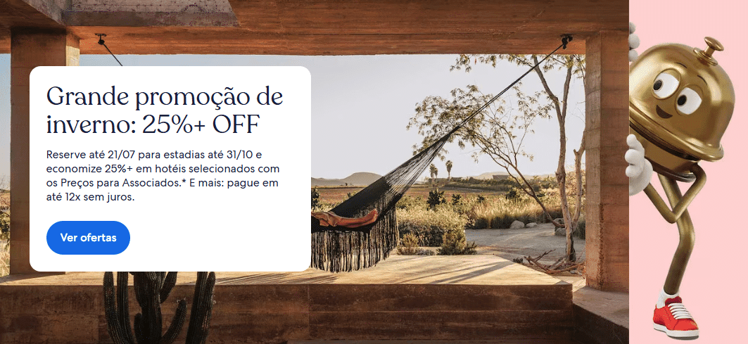 Somente até o dia 21 de julho de 2025, você receberá 25% ou mais em descontos ao reservar hotéis pelo site oficial da Mega Promoção de hotéis de Junho, página essa que você acessa clicando aqui.