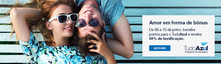 Em função do dia dos namorados a Azul está com uma boa promoção, o programa está dando 40% de bonificação na transferência da maioria dos cartões de crédito. Mas atenção, a promoção vai somente até o dia 10 de Junho de 2016, então na prática você tem até o fim da semana para se decidir. Colamos abaixo as regras da promoção para facilitar, embora você possa ter acesso à página oficial da mesma pelo link disponibilizado abaixo. Boa Viagem!
