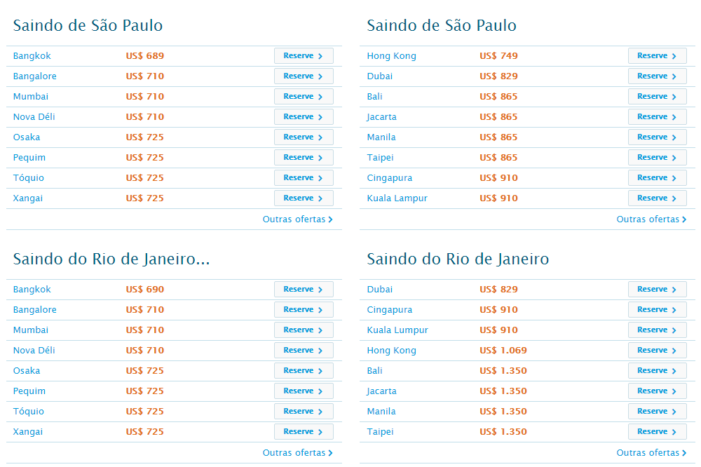 Seguindo a Etihad, a Air France KLM lançou uma super oferta de passagens para a Ásia. É possível achar Bangkok por menos de 2.300 Reais, o que na Etihad está custando 2.430 Reais, todavia essa super oferta da KLM tem vários destinos na Ásia, e muito mais disponibilidade de datas do que a rival estava oferecendo. Recomendamos que caso você esteja interessado em visitar a Ásia, que planeje, e tire proveito dessa oferta, pois os valores estão muito bons, e todos sabem que a Air France KLM é uma boa cia aérea, além de permitir a pontuação no Smiles ou Skymiles da Delta, ou ainda o programa própria da empresa que é o Flying Blue, o qual na minha opinião é o melhor para quem costuma utilizar a Sky Team com certa frequência. Caso seja do seu interesse clique no link abaixo para ir direto para a página oficial da promoção. Boa Viagem!