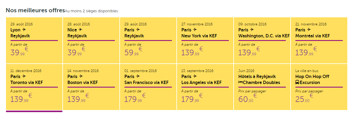 A Wow Air, lowcost da Islândia, está com uma super promoção, onde está fazendo várias origens da França até Reikjavic, capital da Islândia por apenas 80 Euros ida e volta com taxas inclusas, e em conjunto, a Air France/KLM tem RIO/SP – Vários destinos da Europa por 1.700 Reais com taxas inclusas, o que irá totalizar um valor total aproximado de 2 mil Reais. Ambas são promoções relâmpago, e terminam ainda hoje por volta 23h59 horário de Brasília. Para quem tem vontade de conhecer a Islândia é uma excelente oportunidade, mas lembre-se de que se você for despachar mala ainda pagará um pouco mais, pois a WOW é lowcost, o que ainda deixará o preço baixo.