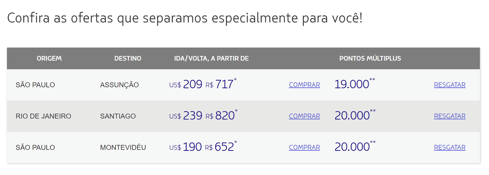 Latam acaba de divulgar uma promoção de milhas, e preços bem baixos, e nesse caso específico, prefiro economizar as milhas e pagar o valor da passagem, e dessa forma acumulando mais pontos ainda. É possível achar passagens de ida e volta para Uruguai, Paraguai, e Chile tudo a menos de 900 Reais ida e volta. Para quem precisa de poucos pontos para qualificação antes do término do ano pode ser uma excelente oportunidade. Caso seja do seu interesse, clique no link abaixo, que irá te redirecionar para o site oficial da promoção da Latam. Boa Viagem.