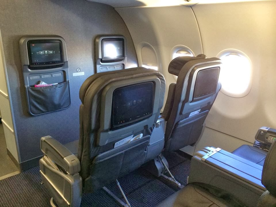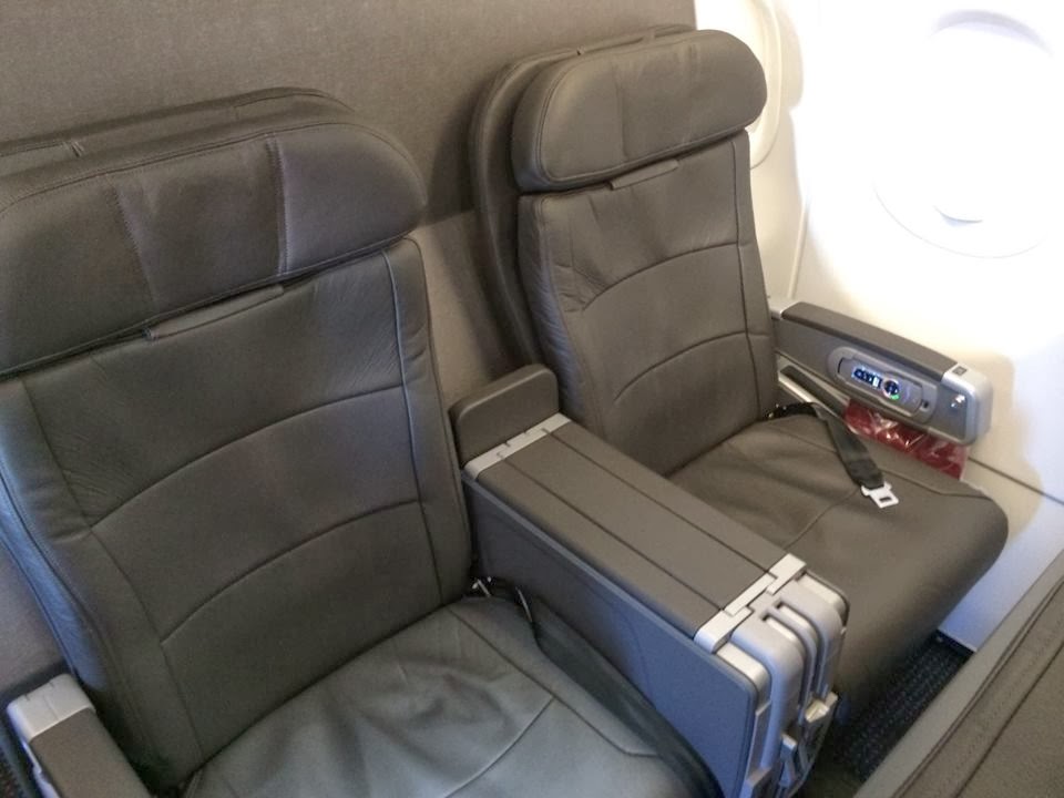 Abaixo a foto da nova Primeira Classe, que assim como a econômica também tem Entretenimento de Bordo pessoal, porém com um pouco mais de polegadas na Tela. A Primeira Classe é muito confortável e aconchegante, porém o número de assentos diminui pela metade, antes eram 16, e agora só tem 8, o que torna mais difícil o Upgrade para os membros elite.