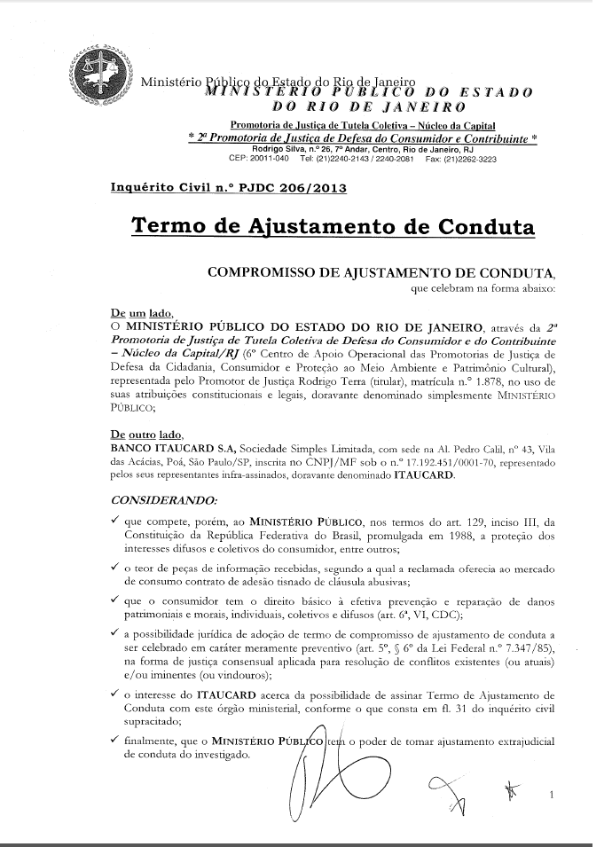O Ministério Público do RJ firmou um Termo de Ajuste de Conduta (TAC) para preservar os direitos dos clientes do Programa Sempre Presente que foram lesados pelo Banco Itaú no último mês, sendo que muitos desses clientes foram avisados das mudanças depois que as mesmas entraram em vigor. Com isso, aquele que acredita que foi lesado tem até 30 dias do recebimento de nova comunicação do Itaú para transferir seus pontos na forma original para quaisquer programas de fidelidade desejado que tem parceria com o Itaú. Segue abaixo uma fotocópia do TAC. Além disso, não se esqueçam que até dia 11 de Abril se você transferir para o Programa Smiles ganhará 10% de bonificação em cima do valor transferido.