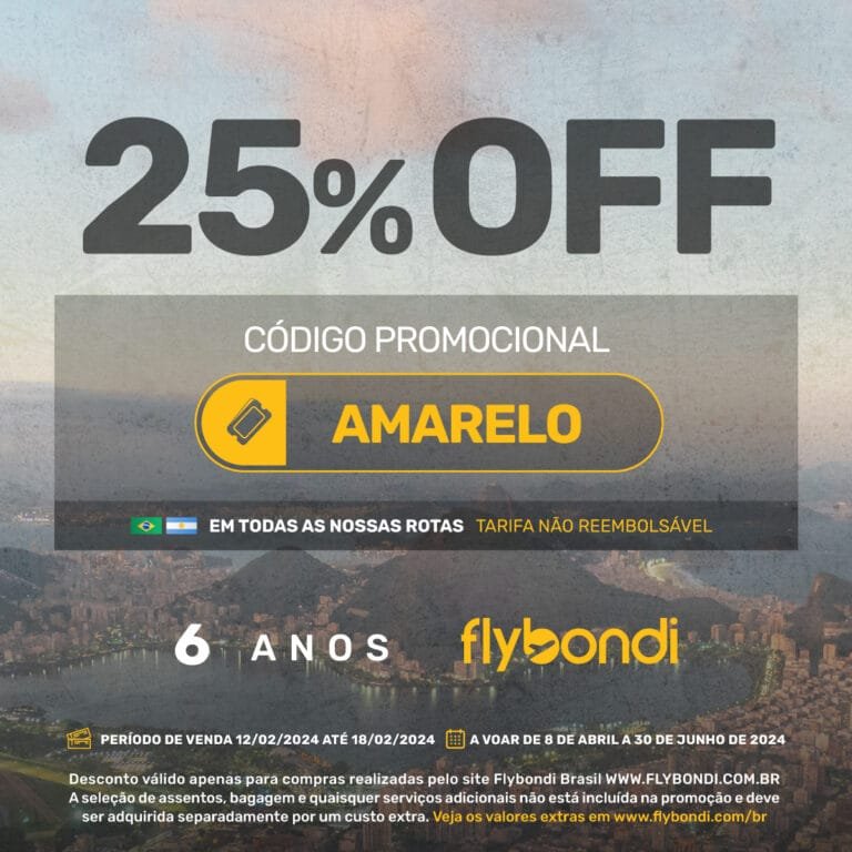 Primeira companhia aérea low cost a unir o Brasil à Argentina, a Flybondi está comemorando 6 anos de vida e para festejar essa data, oferece uma promoção especial aos viajantes...