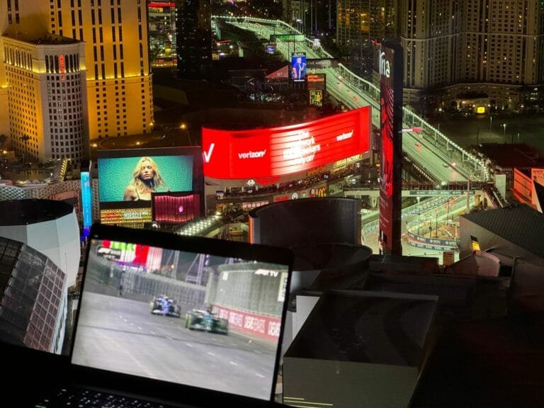 Nesse momento está ocorrendo o Grand Prix de F1 em Las Vegas, e estamos aqui no Vdara Hotel & Spa com uma super vista privilegiada da pista como você pode...