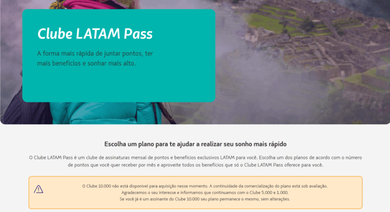 [dropcap]O[/dropcap] leitor Ícaro acaba de nos informar que a Latam Pass não mais está comercializando o clube 10 mil, e de fato fomos na página oficial do programa e consta...