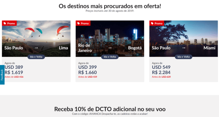 [dropcap]A[/dropcap] Avianca internacional está fazer uma promoção com valores atrativos. Além dos preços das diferentes tarifas é possível obter 10% de desconto com o código promocional AVIANCA. Clique aqui para...