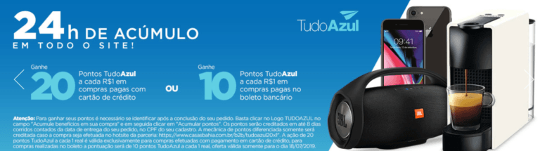 [dropcap]S[/dropcap]omente hoje, os clientes que comprarem através do hotsite da parceria TudoAzul e Casas Bahia receberão até 20 pontos TudoAzul por real gasto em compras. De acordo com as regras...