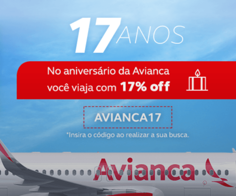 [dropcap]A[/dropcap] Avianca Brasil está comemorando seu aniversário de 17 anos. Em função dessa comemoração a empresa disponibilizou o cupom AVIANCA17 que dará 17% de desconto na emissão de passagens da...