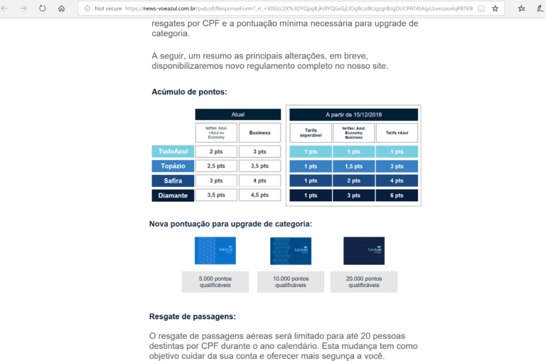 [dropcap]A[/dropcap] Azul acaba de enviar em email para alguns leitores que a partir de 15 de Dezembro de 2018 irá reformular o seu programa de fidelidade TudoAzul. Recebemos a informação...