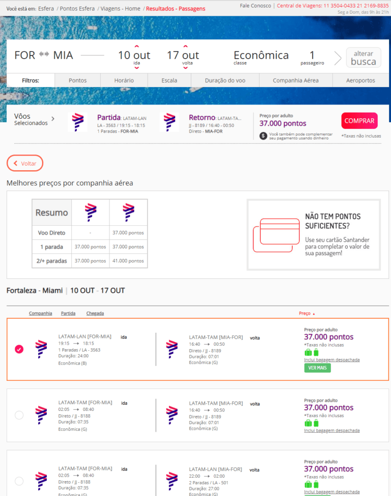 [dropcap]O[/dropcap] leitor Leandro Alves fez um achado, ele conseguiu localizar Fortaleza – Miami por apenas 37 mil pontos ida e volta em classe econômica da Latam no programa Esfera, ou...