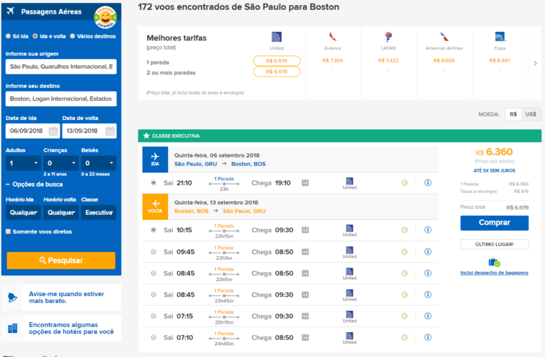 [dropcap]P[/dropcap]essoal, conseguimos achar São Paulo (GRU) a Orlando/Boston por menos de 7 mil reais em classe executiva com a United já com todas as taxas inclusas. O valor final tanto...