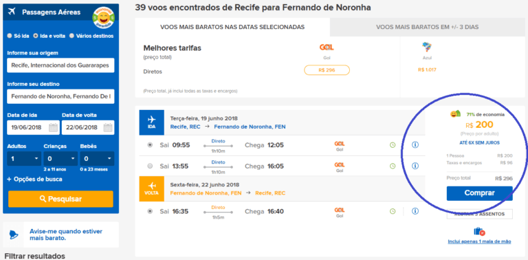 [dropcap]U[/dropcap]ma promoção excelente da GOL está vendendo uma passagem ida e volta para Fernando de Noronha até Julho de 2018 por menos de 300 Reais já com todas as taxas...