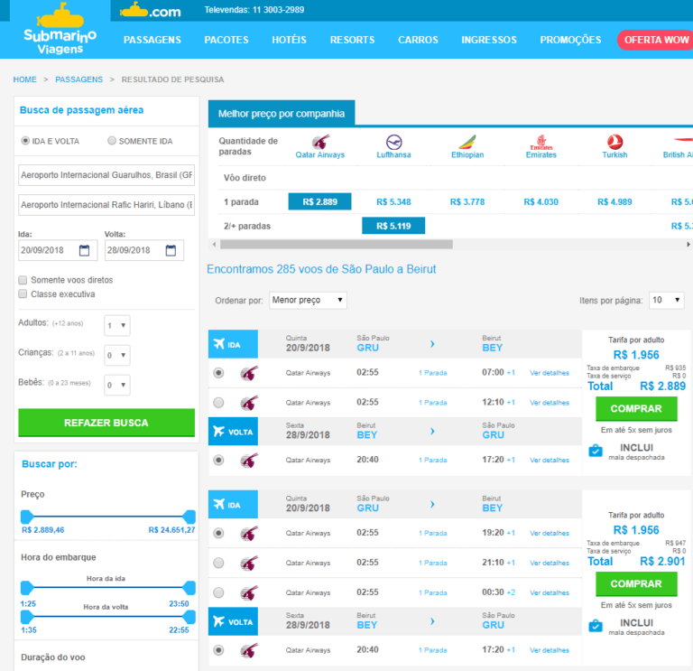 [dropcap]P[/dropcap]essoal, o portal Submarino Viagens enviou uma relação abaixo de excelente tarifas para compras até hoje dia 28 de Fevereiro de 2018. Tem tarifas muito interessantes como por exemplo Beirut...