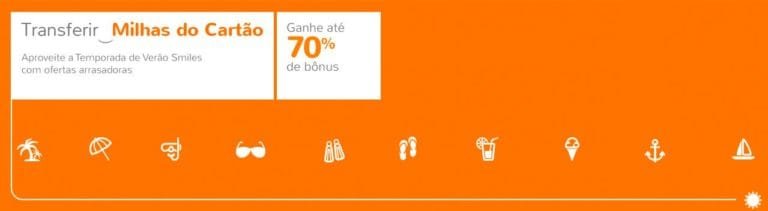 [dropcap]A[/dropcap] “Temporada de verão” oferece, para clientes Clube Smiles e categoria Diamante, 70% de bônus a partir de 5 mil milhas transferidas dos cartões de crédito (www.smiles.com.br/bancos/temporada-de-verao). E para complementar...