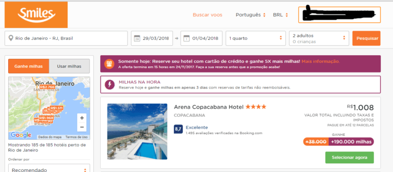 [dropcap]A[/dropcap] Smiles está com uma super promoção em função da Black Friday no seu portal de hotel, onde é possível achar reservas que remuneram em até 50 milhas por real...