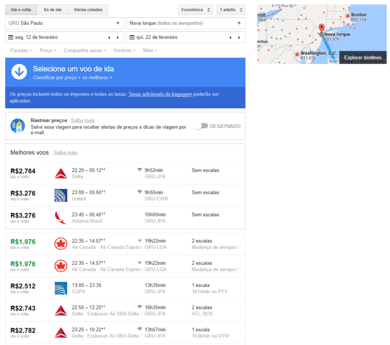 [dropcap]A[/dropcap] Air Canada está com uma boa tarifa para Nova York a partir de São Paulo, do Aeroporto Internacional de Guarulhos por apenas 1.976 Reais ida e volta em classe...