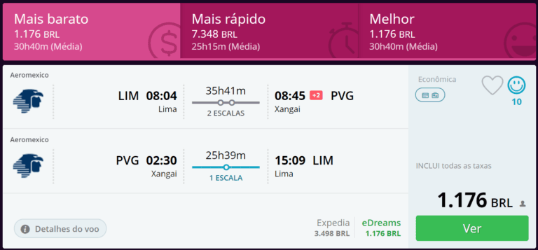 Possível Bug da Aeroméxico está vendendo passagens de Lima, no Peru para Shangai, na China por apenas 1.200 Reais. Obviamente você deve adicionar o custo até Lima, que não deverá...