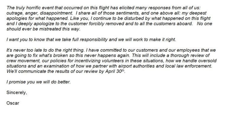 O CEO da United Airlines, Oscar Munoz, acaba de divulgar uma carta a todos os clientes da United Airlines, porém muito tarde, e somente após a um estrago imenso, de...
