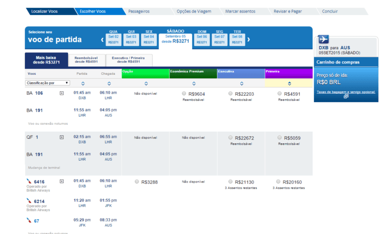 Atenção, a British Airways está fazendo o trecho Dubai – Austin, Texas por 4.231 Reais em Primeira Classe, onde a Econômica está 9 mil e a Executiva está 22 mil...