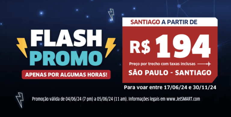 Loucura! A JetSmart iniciou uma guerra de tarifa com a SKY e acabou de iniciar uma promoção relâmpago vendendo passagens para o Chile por menos de 400 reais a apenas...