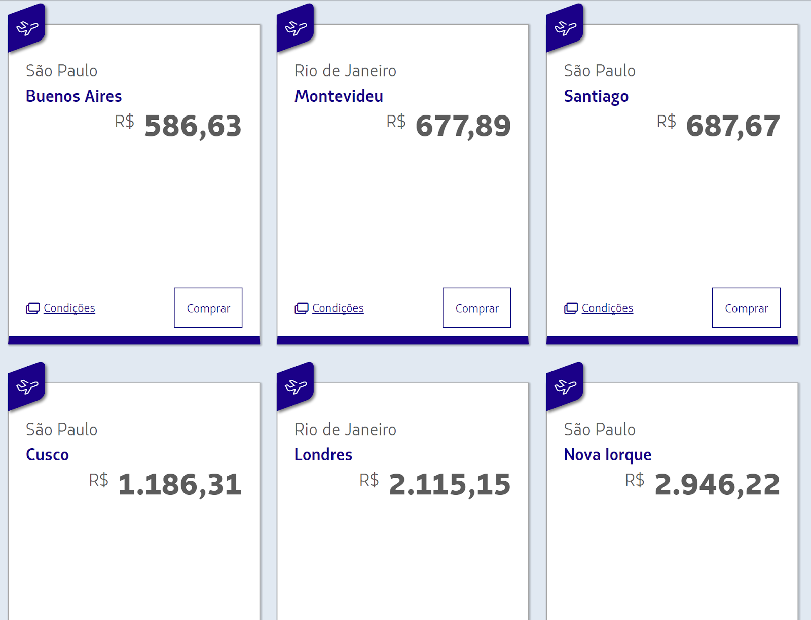 A Latam está com ofertas de passagens internacionais que irão expirar no dia 3 de Janeiro de 2017. Então se você tem planos para viajar já pode aproveitar essas ofertas que tem destinos na América do Sul por menos de 600 Reais e emitir suas passagens. As ofertas da Europa não achei tão interessante, mas sempre pode servir para alguém. Lembrando que a partir de hoje mudou a forma de como você recebe milhas no Latam Fidelidade, que é pelo gasto e não mais pela distância, mesmo nas passagens internacionais, e também é baseado no dólar, logo pode ser vantajoso pontuar em outro programa. Para maiores informações sobre a promoção clique no link abaixo. Boa Viagem.