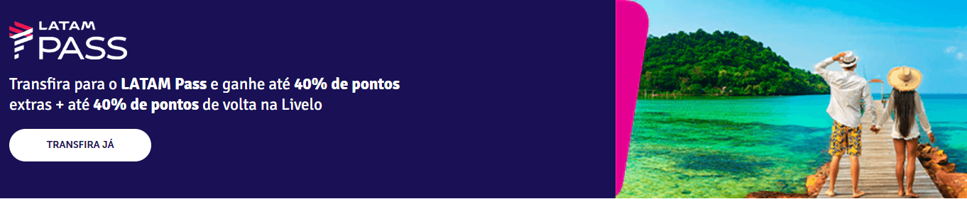 A Latam e Livelo voltaram com mais uma promoção bumerangue nos mesmos moldes de sempre. Para quem já é assinante dos clubes recebe 40% na Latam e 40% de volta na Livelo. Para quem assinar o clube durante a promoção são somente 35% na Latam e 40% de volta na livelo. Você acessa a promoção clicando aqui.