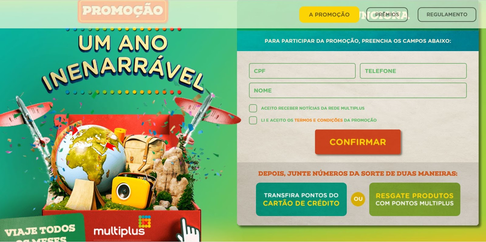 A cada transferência de pontos do cartão de crédito para o Multiplus você recebe um cupom para participar do sorteio de 480 mil pontos Multiplus, ou caso resgate algum produto com pontos multiplus você também receberá o cupom. Além disso durante a vigência da promoção as transferências de cartões receberão 10% de bônus. Serão um total de 12 vencedores nessa promoção, ou seja o Multiplus irá sortear um total de quase 6 milhões de milhas. Para participar da promoção é necessário o cadastro prévio no site, que pode ser feito no link abaixo. A promoção começou hoje e terá vigência até o dia 13 de Janeiro de 2016. Boa Sorte.