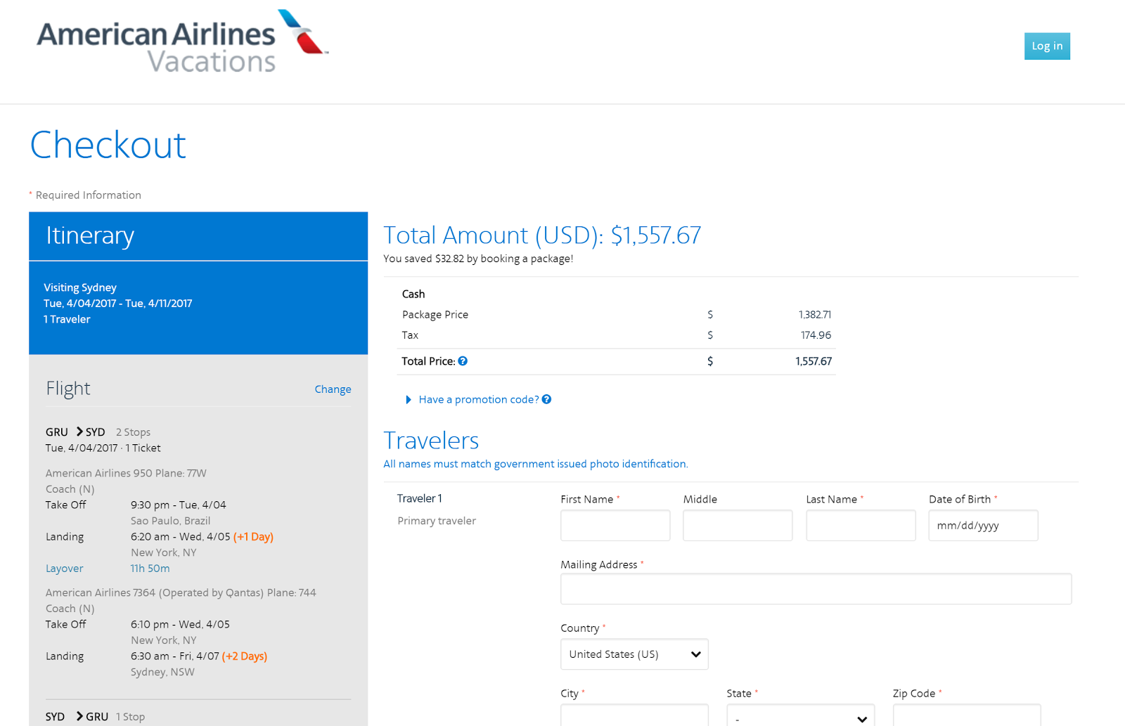 Observem o que simulei abaixo, consegui São Paulo a Sydney no AA Vacations em classe econômica de 4 a 11 de Abril de 2017 por 1.557 dólares americanos em classe econômica já com tudo incluso. O voo é via JFK, logo dará um total de 29.389 milhas e com tarifa classe N, a porcentagem é de 15%, logo totalizará 4.408 EQD, ou seja, você pagou 1.557 dólares pela viagem, com hotel incluso, e ainda pode aplicar upgrade, receberá as 29.389 milhas voadas mais 100% de bônus se for EXP totalizando quase 60 mil milhas, e ainda receberá 4.400 EQD. Está bom ou quer mais?