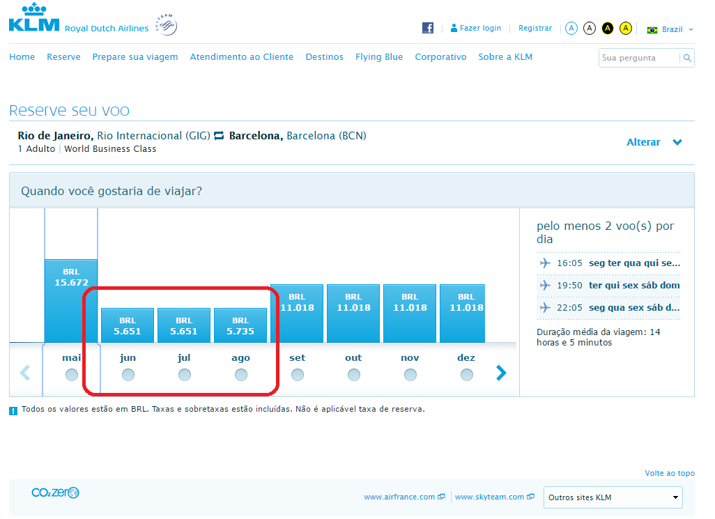 A KLM é uma das melhores cias com serviço para a Europa, e sua tarifa em classe executiva normal fica por volta dos 11 mil reais. Até o próximo domingo, dia 29 de maio de 2016, será possível encontrar Rio de Janeiro/Brasília a Barcelona/Paris por 5.651 Reais já com as taxas e impostos inclusos. Além disso, é possível enviar as milhas para o Programa Smiles, Sky Miles da Delta, ou deixar mesmo no Flying Blue, lembrando sempre que ao voar na classe executiva você acumula bem mais. Se você for comparar com outras cias aéreas perceberá que o valor está muito bom, e você terá um serviço de bordo excelente. Caso seja do seu interesse clique no link abaixo para ser redirecionado para a página oficial da promoção. Boa Viagem!