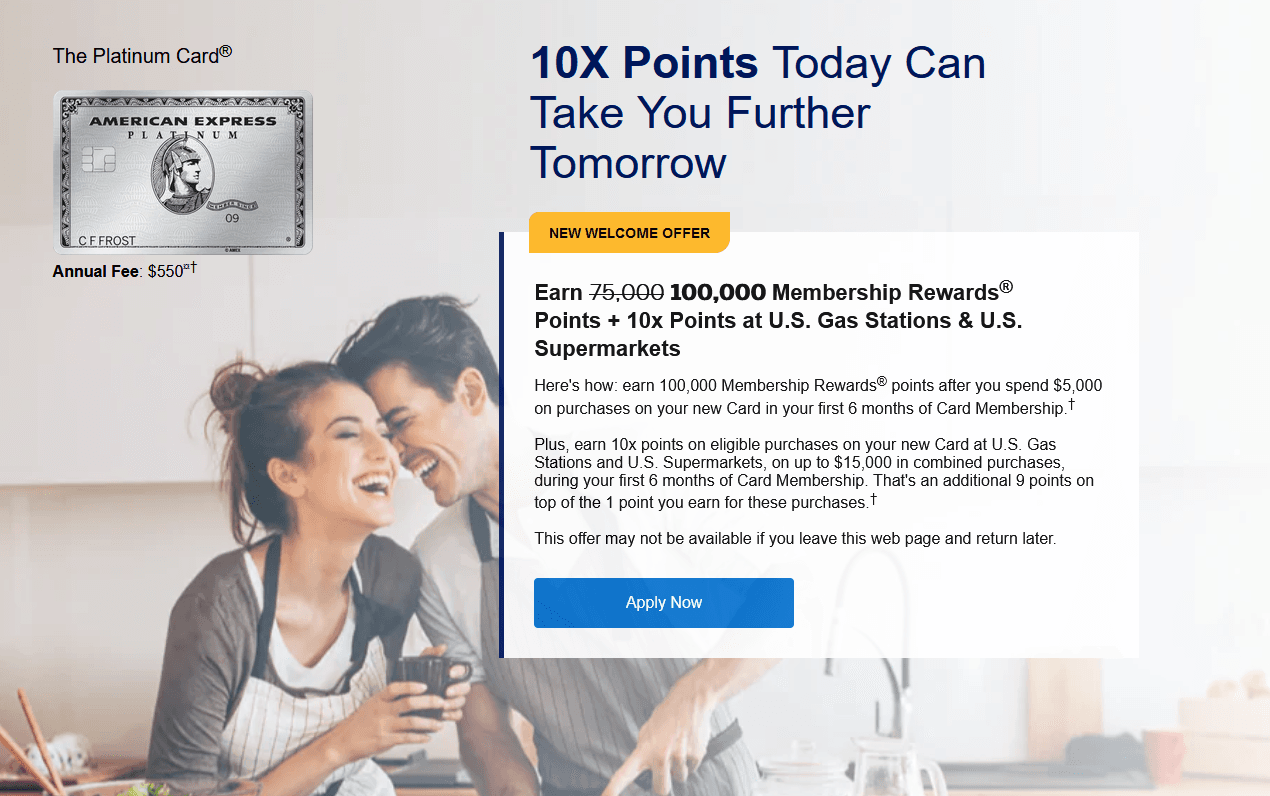 [dropcap]A[/dropcap] Amex dos EUA deu um grande upgrade para quem aplicar e for aprovado para o American Express TPC americano. A oferta corrente é a seguinte, com 5 mil dólares gasto nos 3 primeiros meses, você irá receber 100 mil pontos do Membership Rewards ao invés dos costumeiros 60 mil.