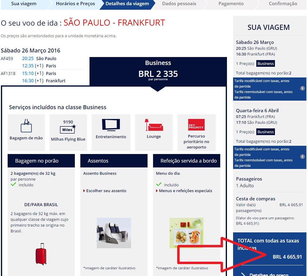 Certamente uma promoção relâmpago da Air France/KLM, onde é possível achar assentos a 4.400 Reais na classe executiva para Londres, Barcelona, Madrid, e FrankFurt. Essas foram as cidades que conseguimos achar em datas selecionados durante o mês de Março e Abril de 2016. A tarifa tem exigência de permanência mínima de 7 dias. Com o dólar na casa dos 4 Reais essa se torna uma excelente tarifa para a Europa e irá acumular muitas milhas no Programa Flying Blue, que te dá o status máximo após 10 anos mantendo o mesmo, o que não é difícil como você pode relembrar ao rever o relatório de inteligência do programa de 2016 clicando aqui.