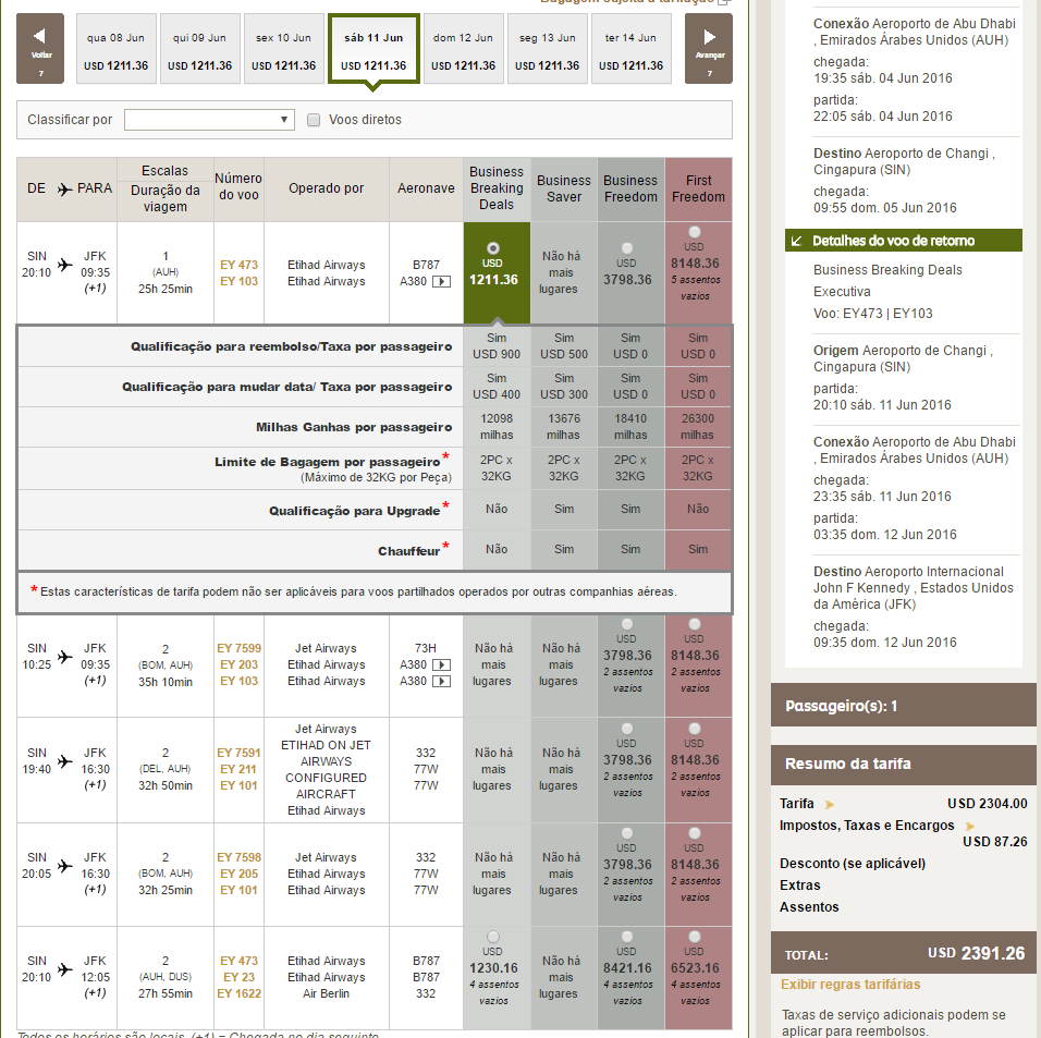 Esse é um alerta de tarifa que, apesar de valor alto, pode ser considerado barato, em função da rota, do número de milhas, e da classe a ser viajada. Não parece ser bug, pois o valor total de uma passagem de ida e volta está 8.500 Reais, sendo que nesse momento é possível comprar somente ida ou somente volta por 4.210 Reais o trecho, em classe executiva da Etihad viajando no A380 que possui um produto espetacular e bar à bordo. Lembrando também que essa passagem pontua milhas no programa AAdvantage. Não se trata de Bug e sim um chamado de “Breaking Deal” que vale muito a pena na minha opinião, principalmente para quem já está em NY. Perceba que se você sair de São Paulo, o valor dobra para essa viagem em classe executiva para o mesmo destino, e além do mais você pode combinar essa tarifa com alguma de classe econômica para Nova York da American Airlines que hoje está vendendo RIO/SP-JFK por volta de 1.200 Reais. Pode parecer no final das contas um valor alto, mas para a experiência, e chegar em Singapura de classe executiva está um excelente preço, lembrando que Singapura é um excelente destino, e não muito caro, sendo que o dólar de lá está no patamar de R$ 2,70. Se for do seu interesse clique no link abaixo para ser redirecionado para a página onde é possível achar esse valor. Boa Viagem!