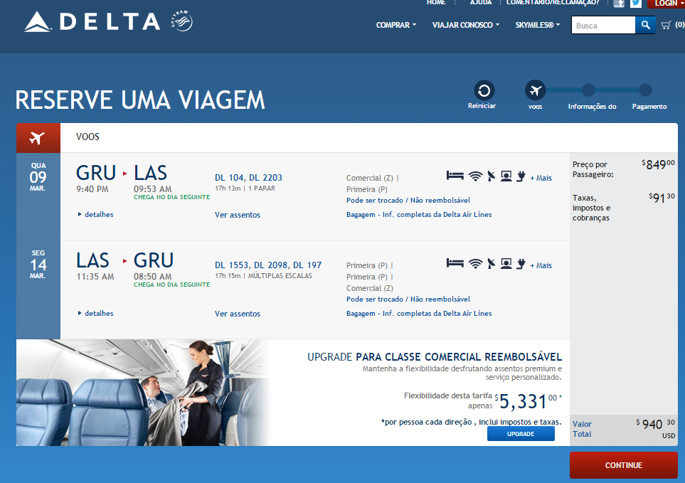 *Capturas de tela do site oficial da Delta.